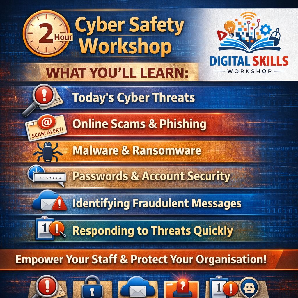 Cybercrime is no longer a distant threat — it targets employees, systems, finances, and reputations every single day. This interactive workshop equips your staff with the knowledge, awareness, and real-world skills needed to stay safe online and protect your organisation from costly cyber incidents.